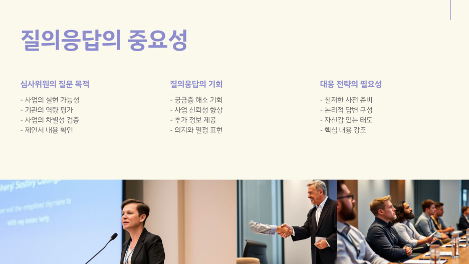 질의응답은 심사위원의 궁금증을 해소하고, 사업의 신뢰성을 높일 수 있는 기회입니다.